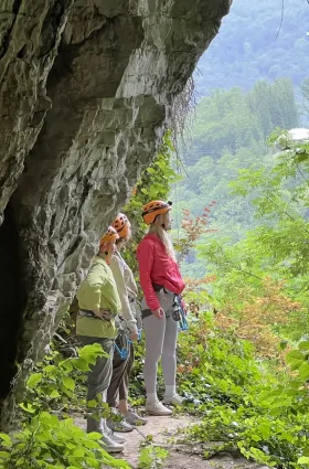Вы попадёте в нетронутые уголки дикой природы, куда добраться самостоятельно практически невозможно. Здесь уместились все достоинства сочинских субтропических каньонов: обилие лиан, папоротников, плетучек и мха, высокие белоснежные скалы из известняка, бирюзовая горная вода.