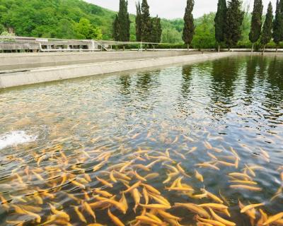 На комфортабельном автомобиле в компании гида мы отправимся из Адлера к форелеводческому заводу «Адлер». Это самое большое хозяйство по выращиванию радужной форели в России и Европе. Вы знали, что эта рыба была завезена к нам из Северной Америки в 1911 году и сначала поставлялась только к императорскому столу? На экскурсии вы узнаете, как выращивается форель и какой она бывает. Увидите форель-альбиноса, голубую и радужную форель, а также породы, выведенные здесь в ходе многолетней селекции. Мы покорим огромную белугу и загадаем желание. Само хозяйство располагается на живописном берегу реки Мзымты у входа в Ахштырский каньон, так что прогулка обещает быть приятной.