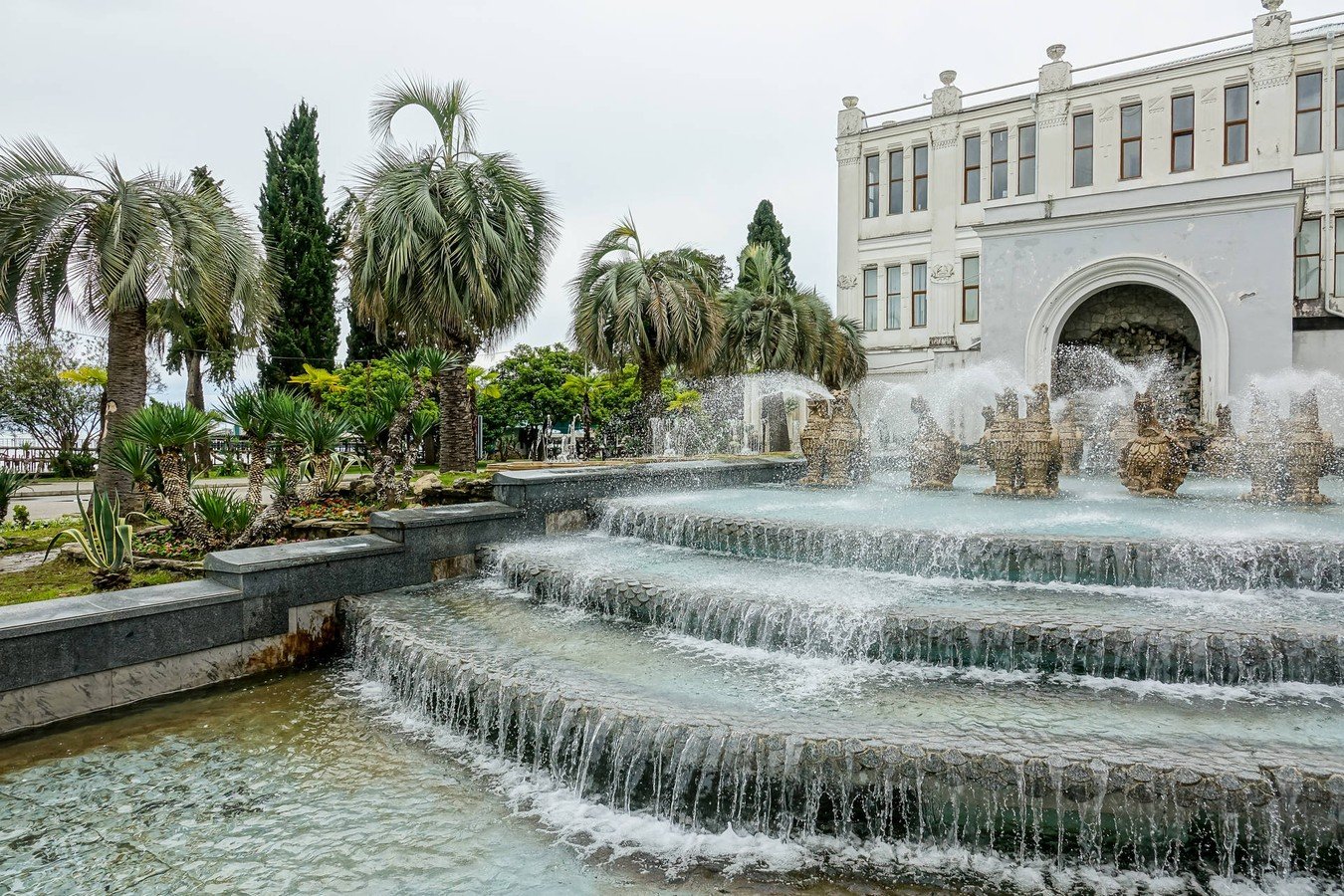 - В Сухуме мы пройдем по живописной набережной столицы, рассмотрим фонтан с мифическими грифонами и архитектурные памятники советской эпохи.