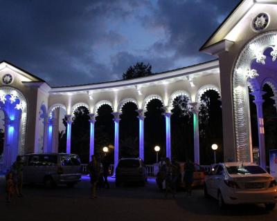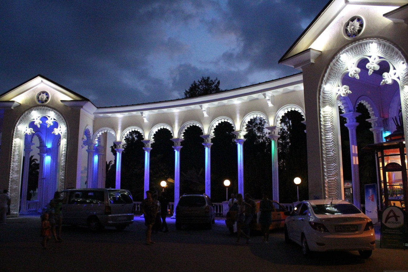 10:00 — колоннада в мавританском стиле на берегу моря в Гагре