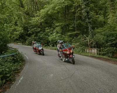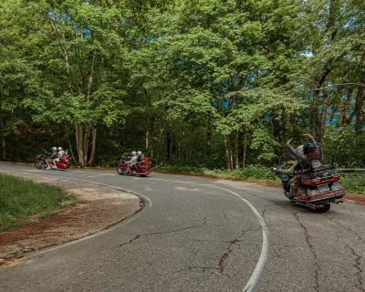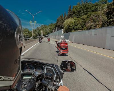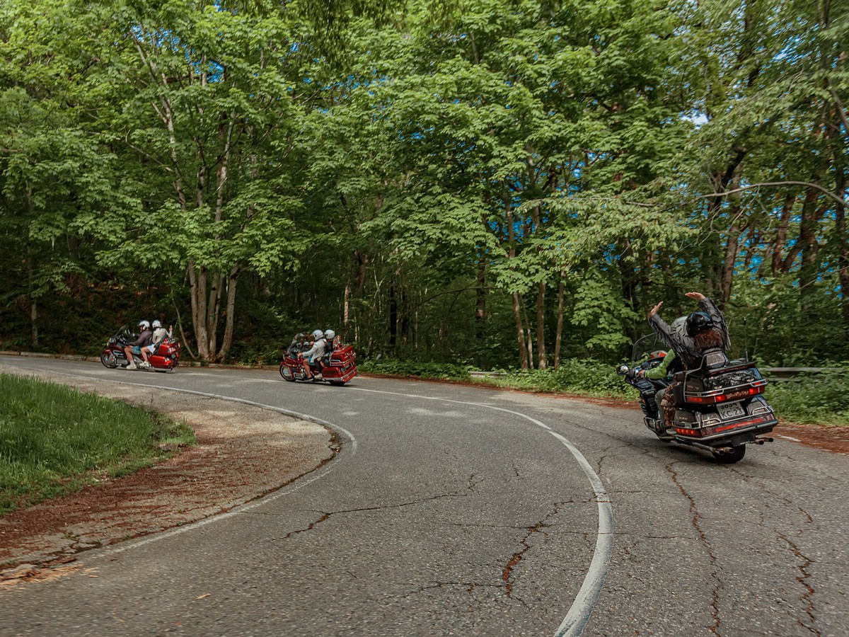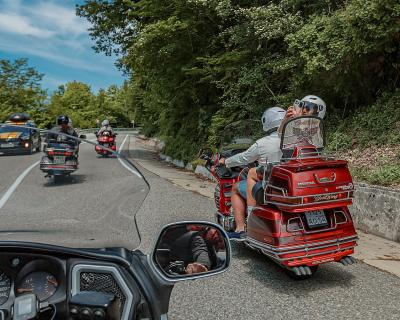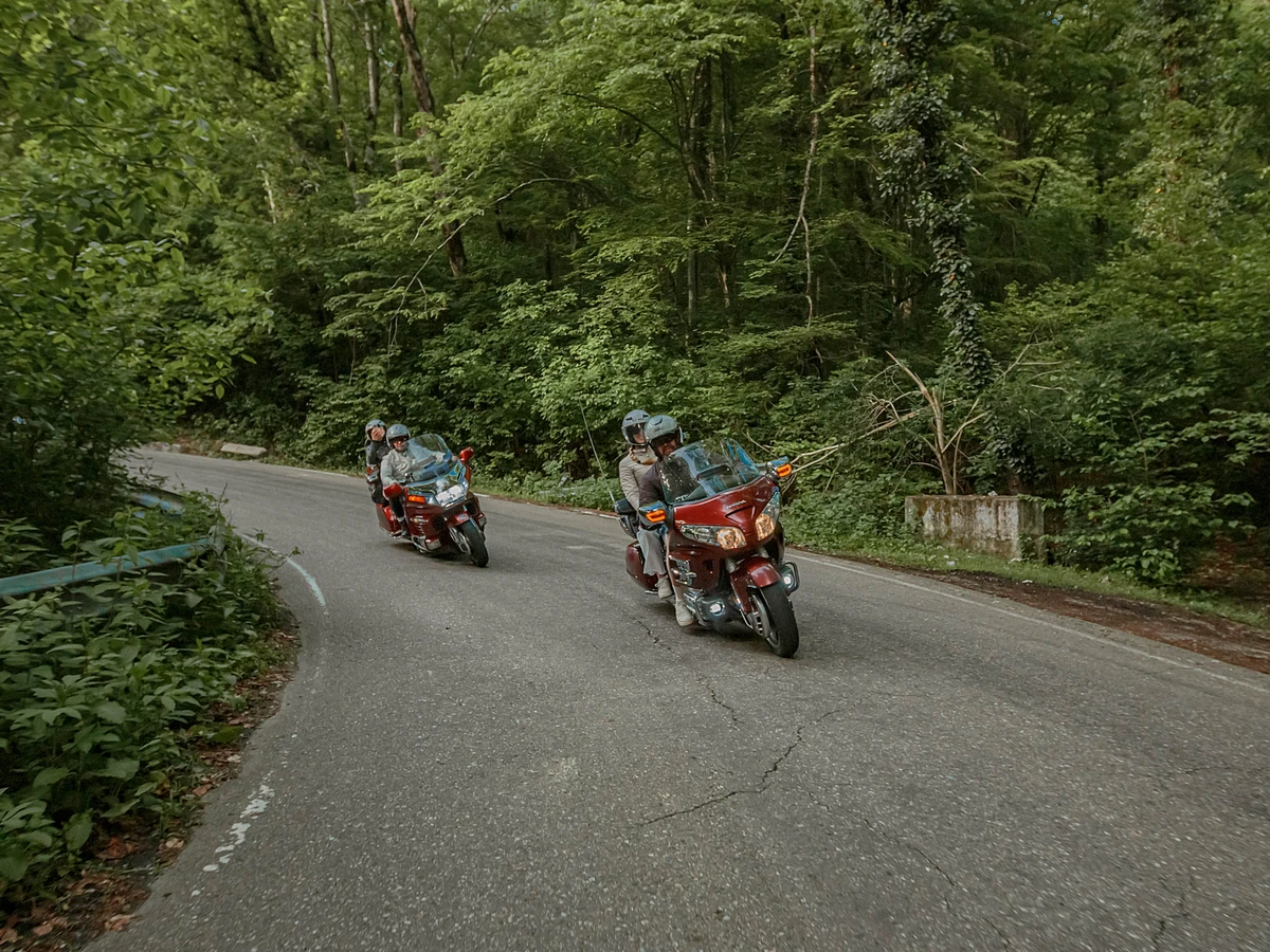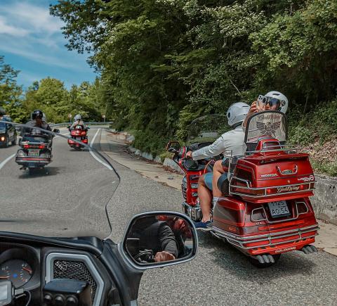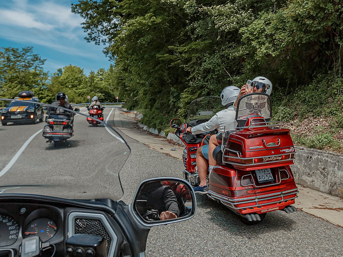 • Едем на мотоциклах Honda GL 1800 Gold Wing и Harley Davidson Electra Glide. Вы — в качестве пассажира. Все мотоциклы оснащены сиденьем со спинкой и подножками подо всю стопу, а также вместительными кофрами, куда можно сложить вещи