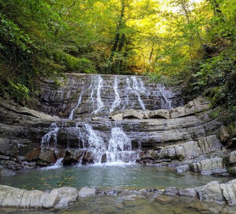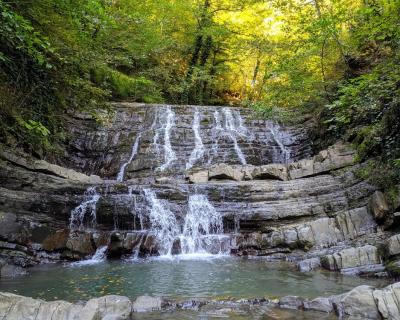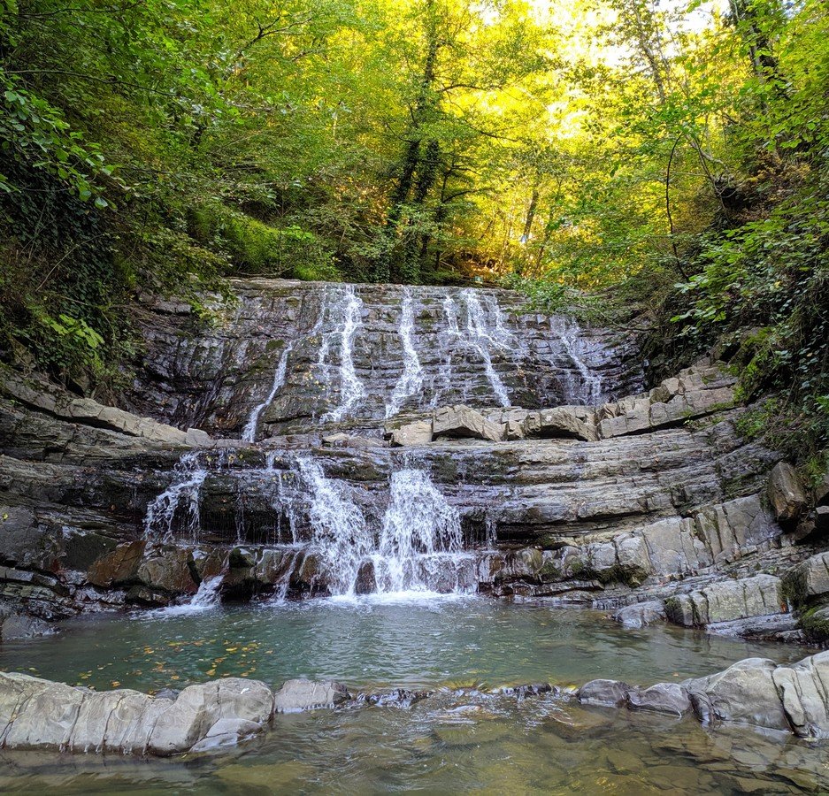 Затем — пешая прогулка по тисо-самшитовому лесу, окружающему семь каскадных водопадов (около 1 км).
