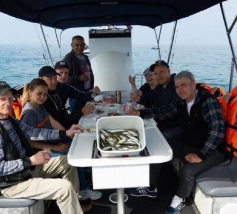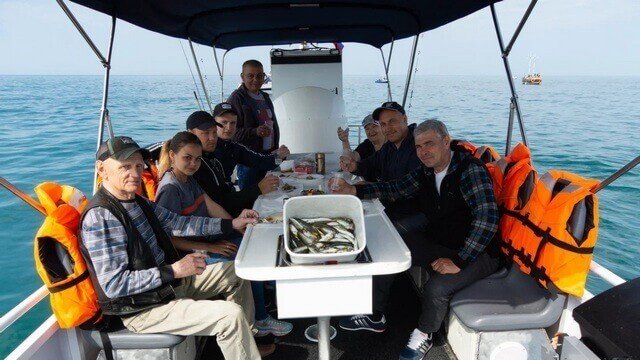 - Рыбалка в открытом море происходит в группе до 11 человек на борту. Время групповой рыбалки — 3 часа.