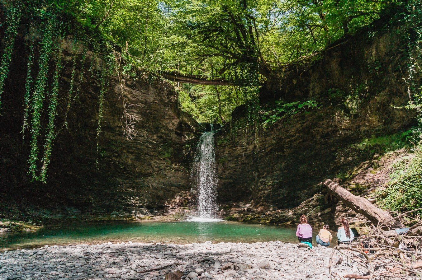 Следующая остановка — музей 2в1: автомотостарины и краснодарского чая. Вы узнаете об истории чаеводства в Сочи и полюбуетесь пейзажами с высоты, а дети смогут полазить по автомобилям на улице. Конечно, вас угостят вкуснейшим горным чаем. Кроме того, мы съездим в Хостинский район, где прогуляемся к Змейковским водопадам.