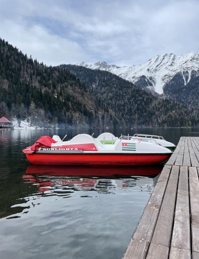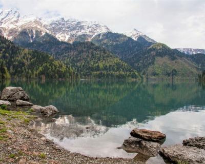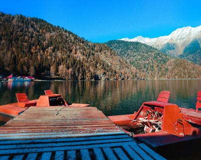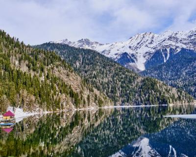 Зимой укутанное снегами, а летом утопающее в зелени, высокогорное озеро Рица предстанет перед вами среди живописных гор-великанов. Здесь вы откроете для себя легенды его появления и попьёте чай в традиционной абхазской апацхе.