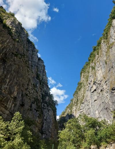 Вы отправитесь к живописной реке Бзыбь, где красивейшее ущелье прорезает Кавказский хребет. По дороге вам встретятся остатки великих когда-то крепостей времён Абхазского царства, и вы обязательно пройдёте по подвесному мосту над бурными водами. Кроме того, вы побываете в Юпшарском каньоне, прогуляетесь вдоль реки Гега и насладитесь ключевой водой из родника, с которым связана милая примета.