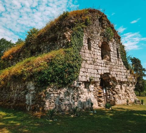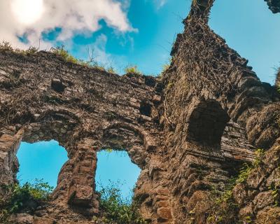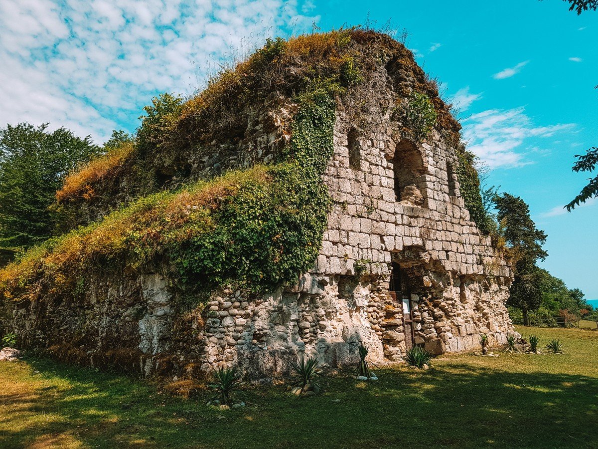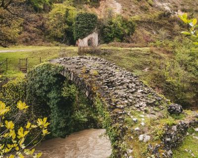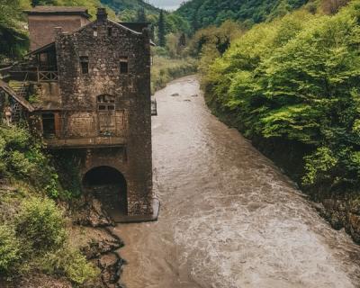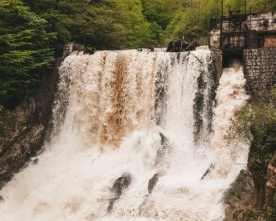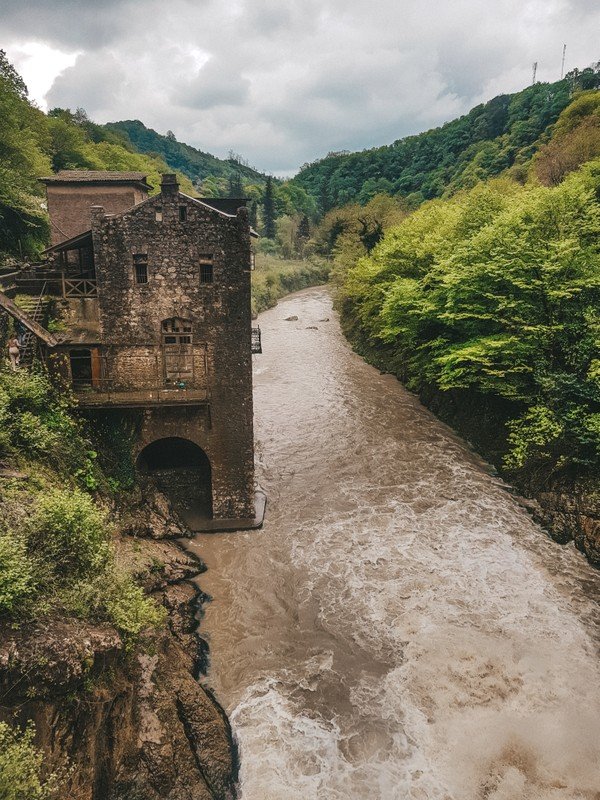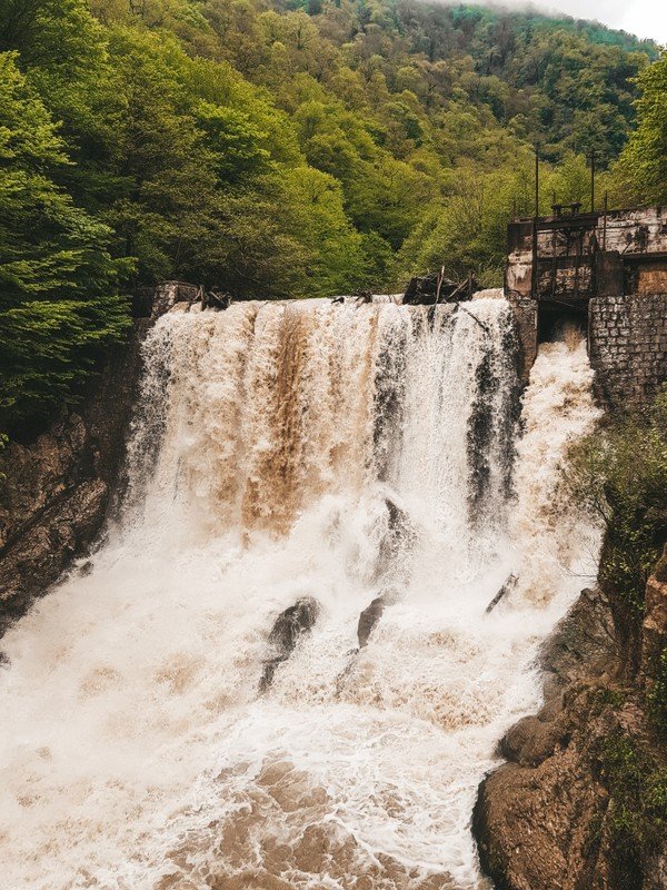 - Далее отъедем от побережья, чтобы оказаться в горной местности, где прекрасно сохранилась одна из старейших электростанций Абхазии — каменная Беслетская ГЭС 1905 года. А рядом вы увидите ещё более древнее строение — Беслетский мост 11 века, с которого открывается вид на водопад. Смело фотографируйтесь на нём, мост и сейчас выдерживает нагрузку в 8 тонн!