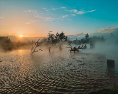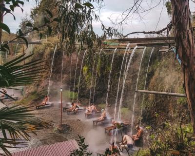Вы ещё не переполнились впечатлениями? Завершаем путешествие расслаблением на Кындыгских горячих источниках. В вашем распоряжении 4 бассейна с разной температурой воды, лечебная грязь, водопады с массажным эффектом. Источники полезны для суставов, кожных заболеваний и нервной системы, но не рекомендуются людям с болезнями сердца.