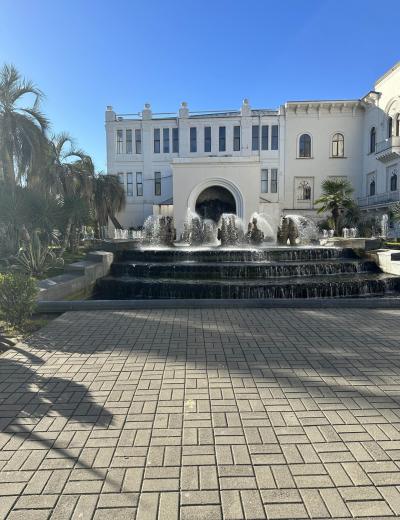 - Пора ехать в столицу! В Сухуме прогуляемся по набережной, выйдем на пирс, подойдём к каскадному фонтану драмтеатра и зайдём в кофейню «Брехаловка» — колоритное место, куда абхазы приходят играть в нарды, домино, пить кофе и общаться