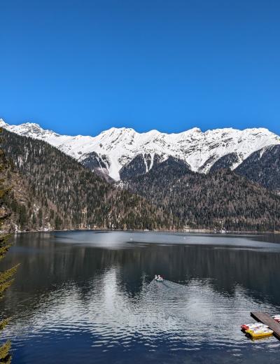 Путь к озеру Рица сам по себе природная достопримечательность: всю дорогу мы будем восхищаться живописным горным царством и водопадами на шумной реке Бзыбь. Увидим крепость-храм 10 века, Юпшарский каньон, колоритный подвесной мост, водопады Девичьи Слёзы и Мужские Слёзы, Голубое озеро. Заедем на смотровую площадку «Прощай, Родина». А затем перед вами раскинется озеро Рица, укутанное по берегам лесом, словно одеялом. И поразит всепоглощающим спокойствием и величественной красотой.