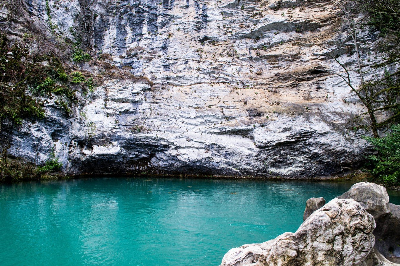 - Юпшарский каньон — величественные горы, обрамляющие узкое ущелье. Здесь мы сделаем остановку для завтрака. Прямо у реки Бзыбь вы сможете отдохнуть и попробовать вкусные блюда местной кухни