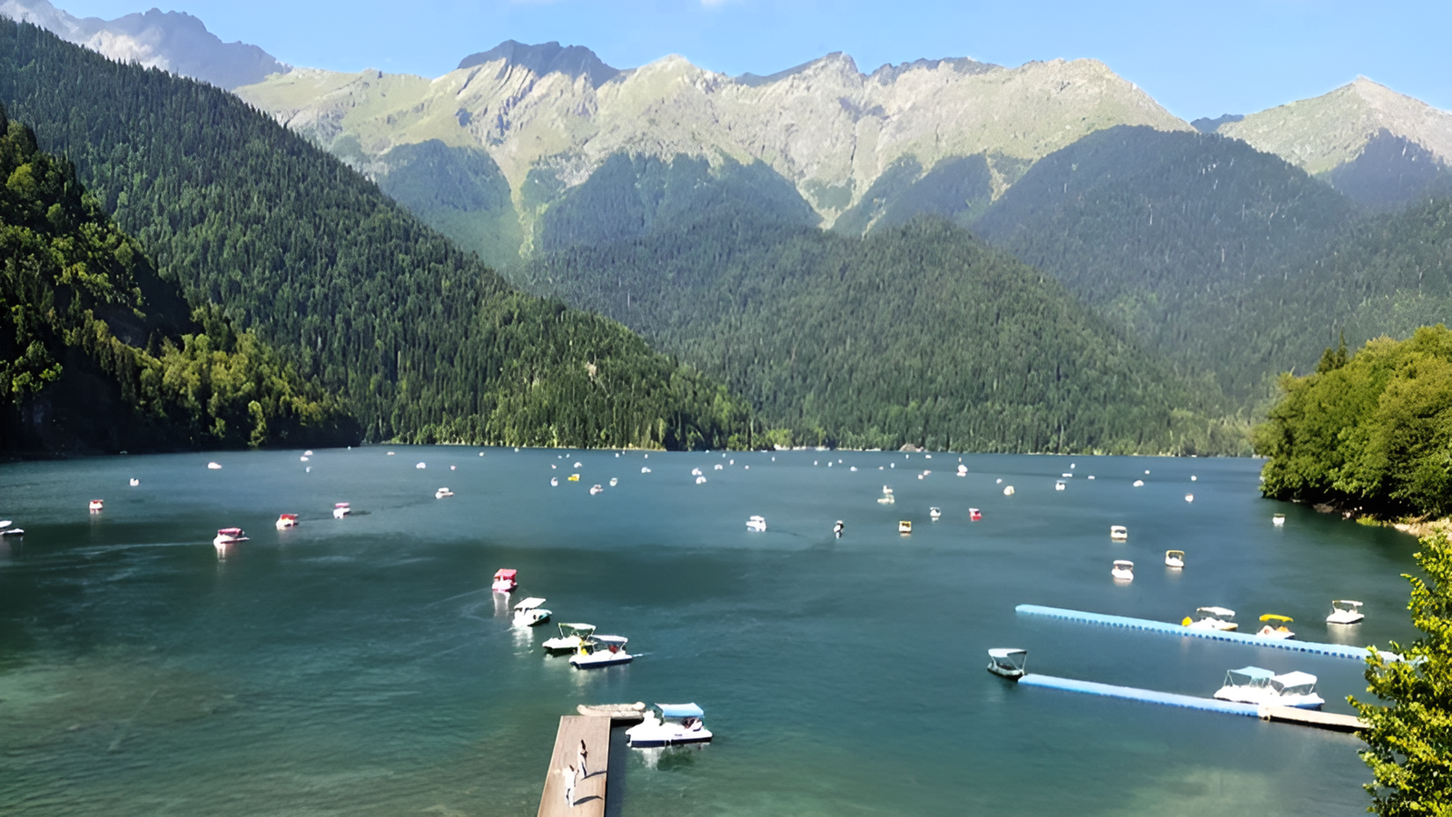 - Озеро Рица — одна из жемчужин Абхазии. Сначала вы полюбуетесь озером с туристической стороны, а затем отправитесь на дальний берег, который остаётся недоступным для большинства экскурсионных групп