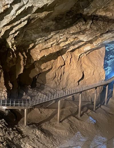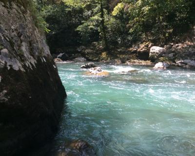 Из Гагры мы поедем на высокогорное озеро Рица. По пути нам встретятся водопады — Женские Слёзы и Мужские, Молочный водопад, а также небольшой зоопарк, где есть волки, львы и другие звери. Если осмелитесь, покормите медвежонка или возьмёте на руки 2-годовалую пуму. Дальше мы поедем вдоль реки Бзыбь с несколькими подвесными мостиками, где можно будет сфотографироваться, и заглянем в 3 тоннеля, один из которых вырублен прямо в скале.