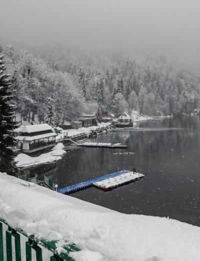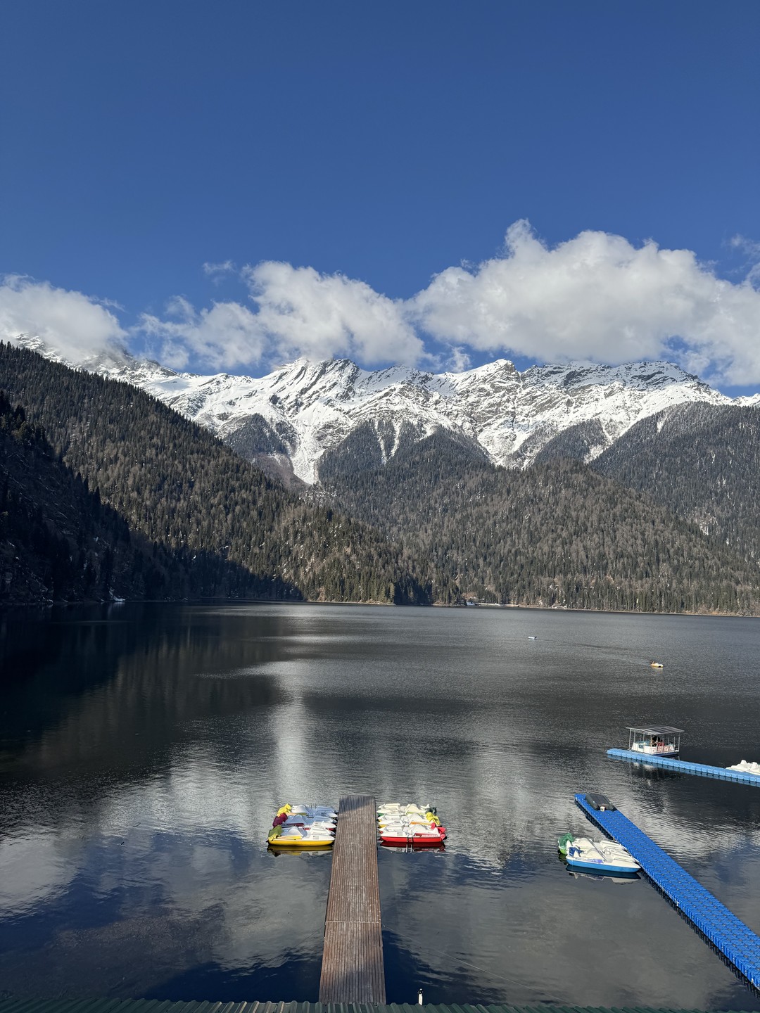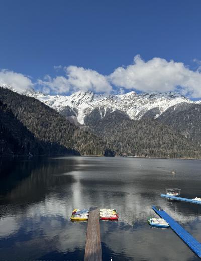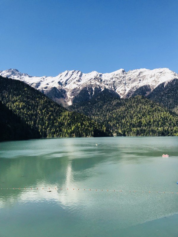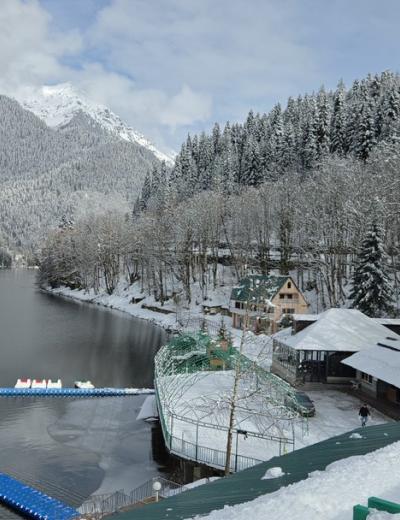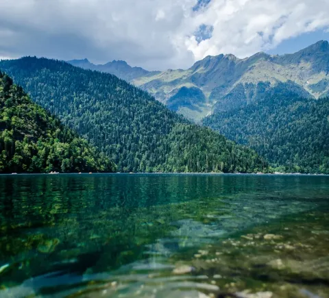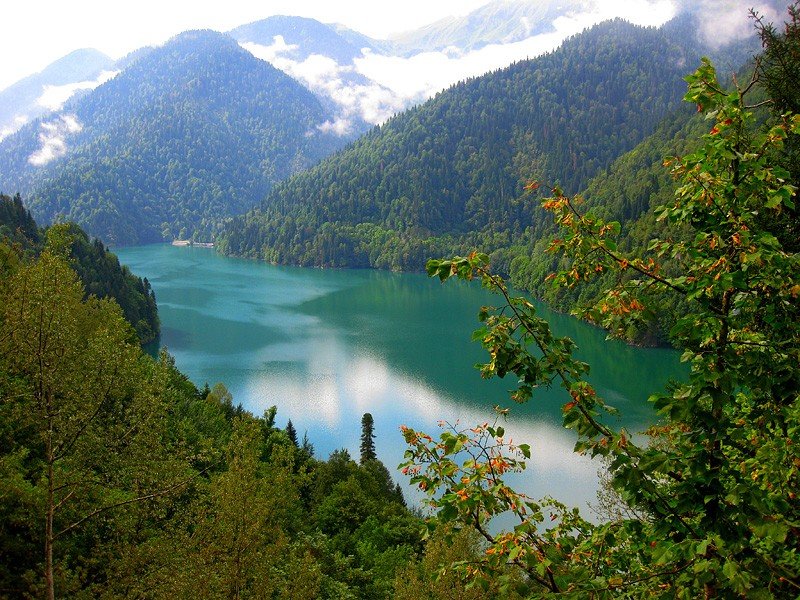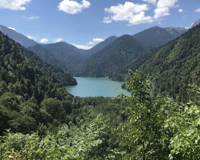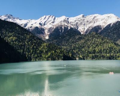 - Озеро Рица — главный символ страны. Вы узнаете историю его происхождения и полюбуетесь окружающими ландшафтами: лесами и горными склонами.