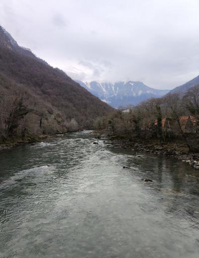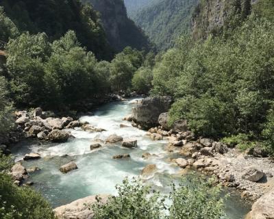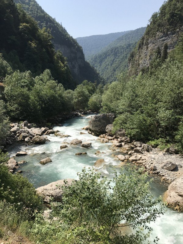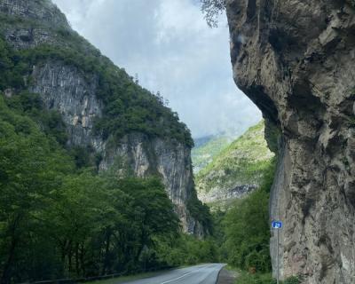 - Три ущелья — мы проедем Бзыбское, Гегское и Юпшарское ущелья. Погуляем по подвесному мосту над рекой и рассмотрим храм X века.