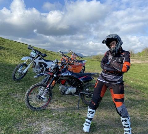 - Мотоцикл подбираю для вас по росту и исходя из ваших навыков и опыта. Есть питбайк полуавтомат, среднеразмерный мотоцикл, полноразмерные 4т и 2т