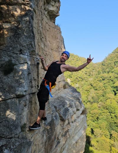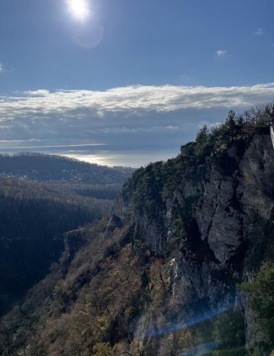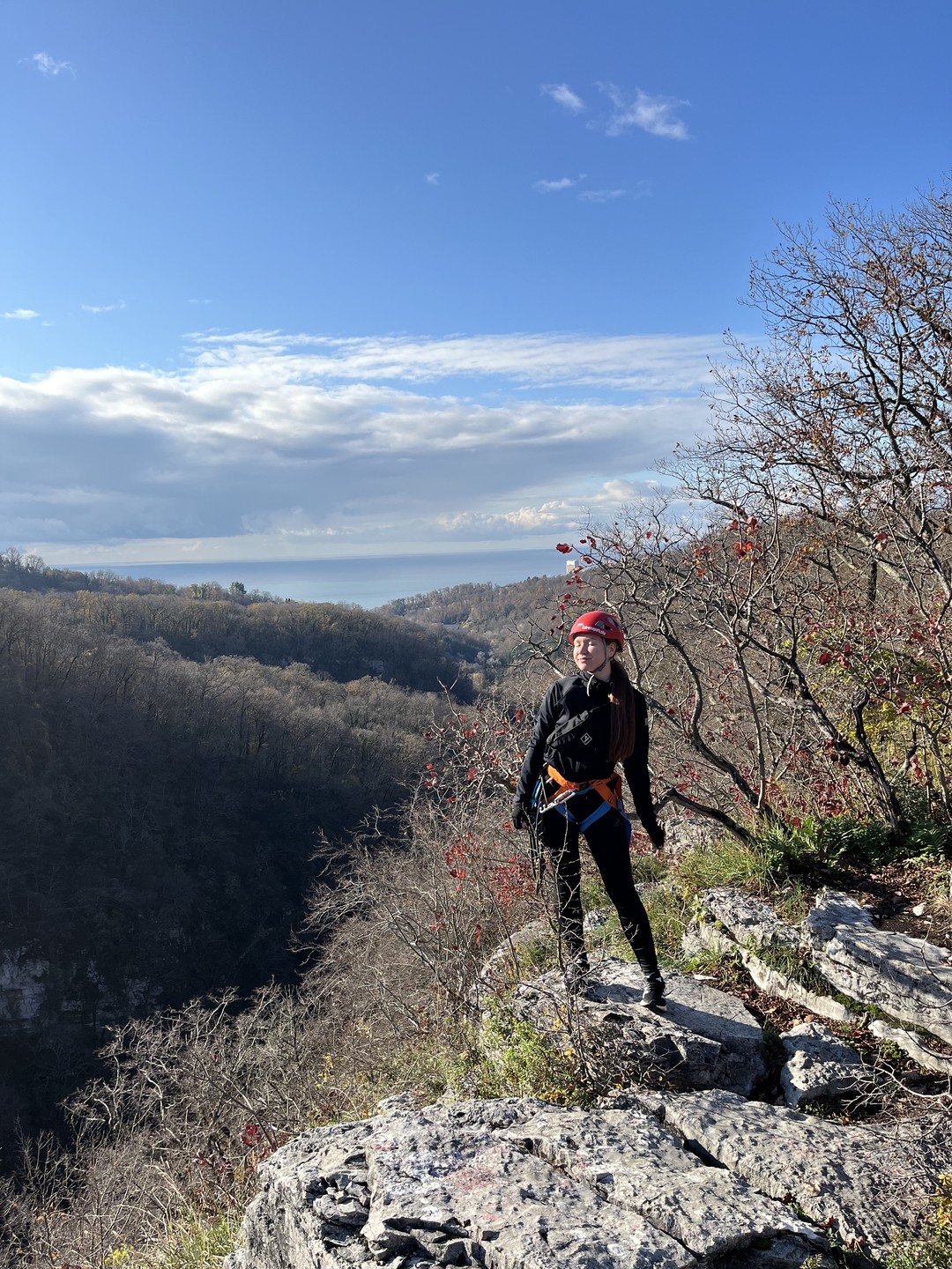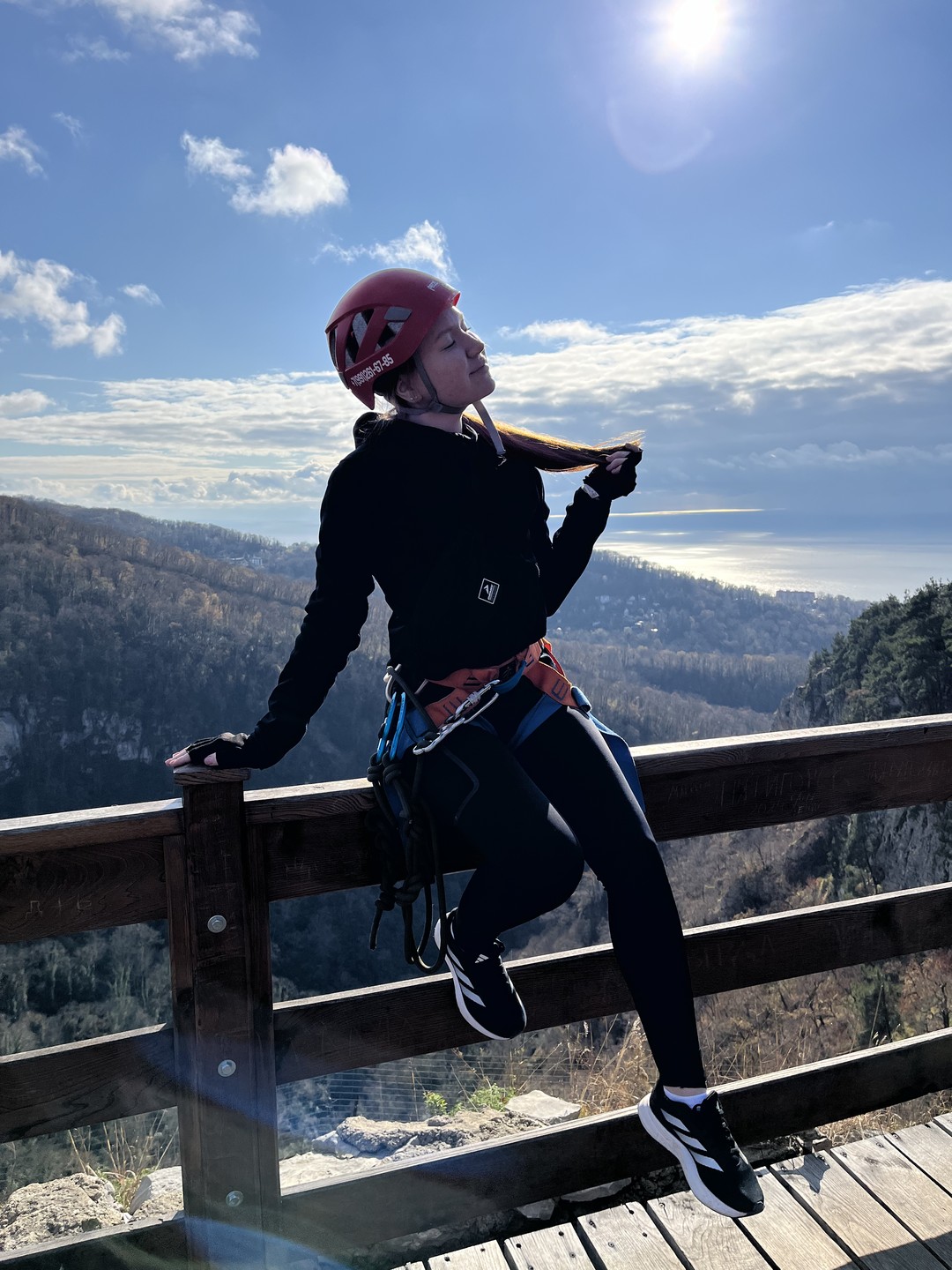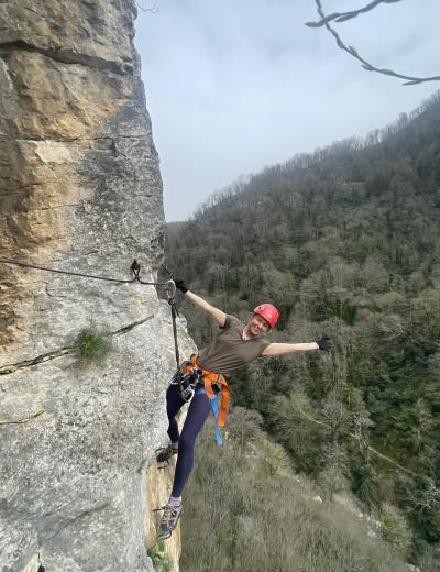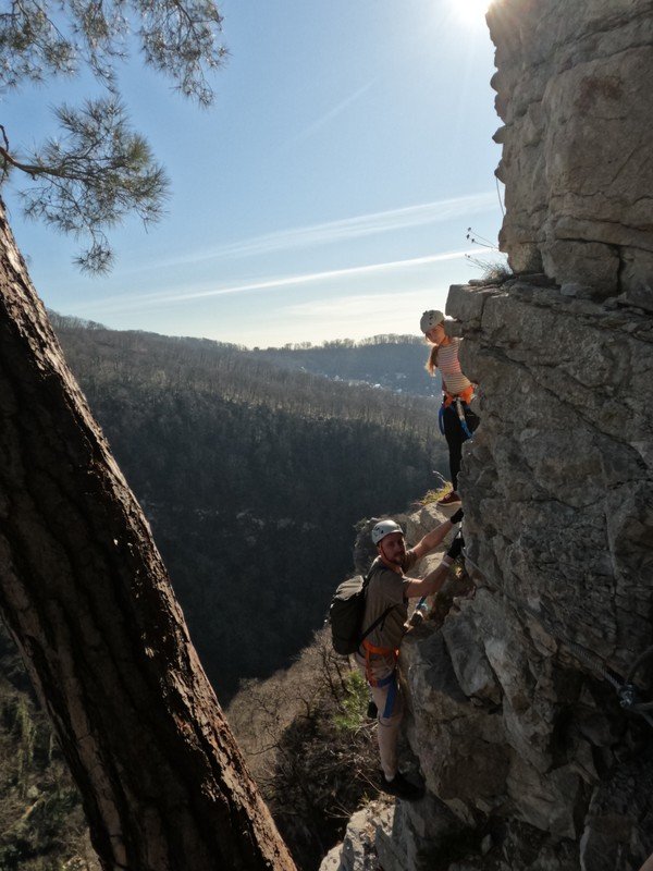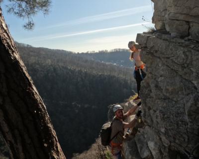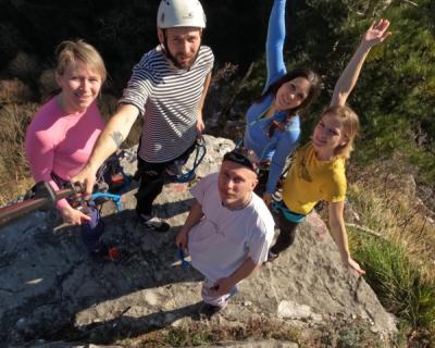 Мы доберёмся до скал на комфортабельном автомобиле. Вы пройдёте инструктаж, получите всё необходимое снаряжение и начнёте настоящий альпинистский подъём — возможно, первый в своей жизни! Мы будем двигаться по маршруту в комфортном темпе, не торопясь и прерываясь на отдых и фотографирование. Гид будет постоянно находиться рядом и помогать всем участникам в сложных местах. В конце маршрута мы поднимемся на смотровую площадку Орлиных скал, где находится статуя Прометея, и насладимся заслуженным отдыхом и невероятными горными видами.
