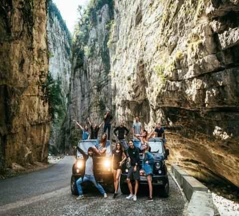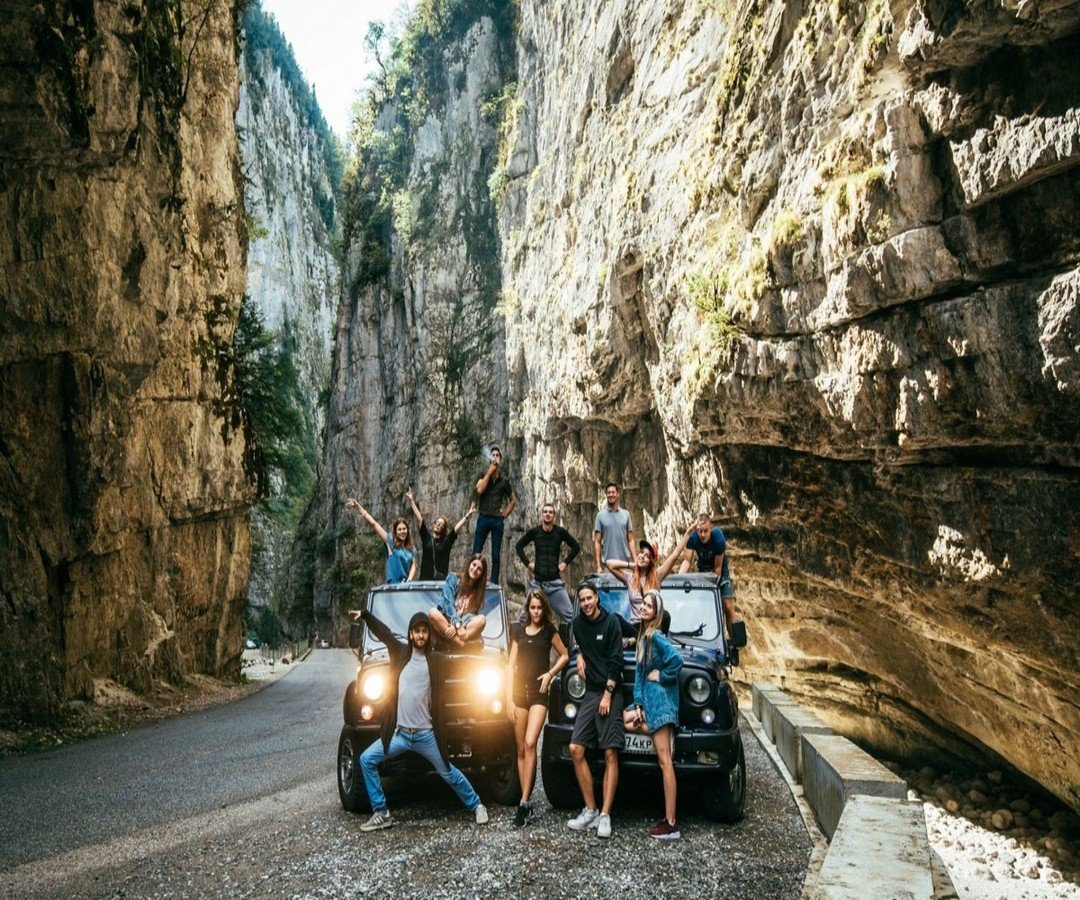 Отправиться на внедорожнике к древнему каньону, Голубому озеру и Рице из Сочи
