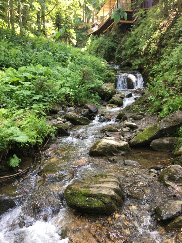 - Следующий пункт маршрута — минеральный источник «Чвижепсе». Здесь вы попробуете местный нарзан и наберёте с собой минеральной воды, сколько захотите.