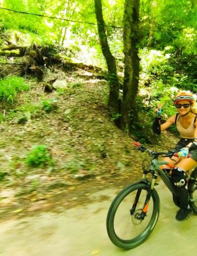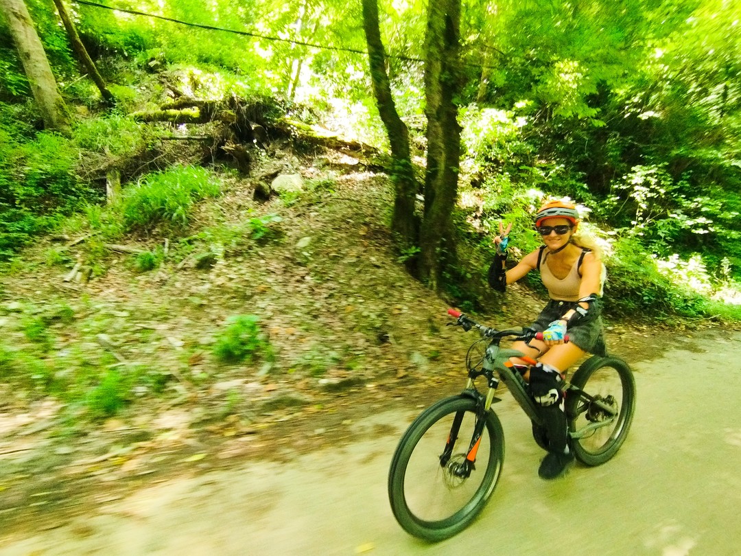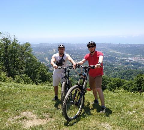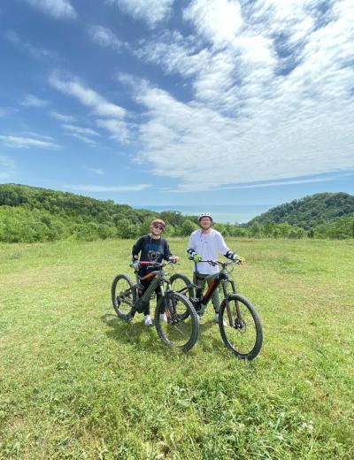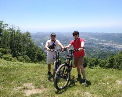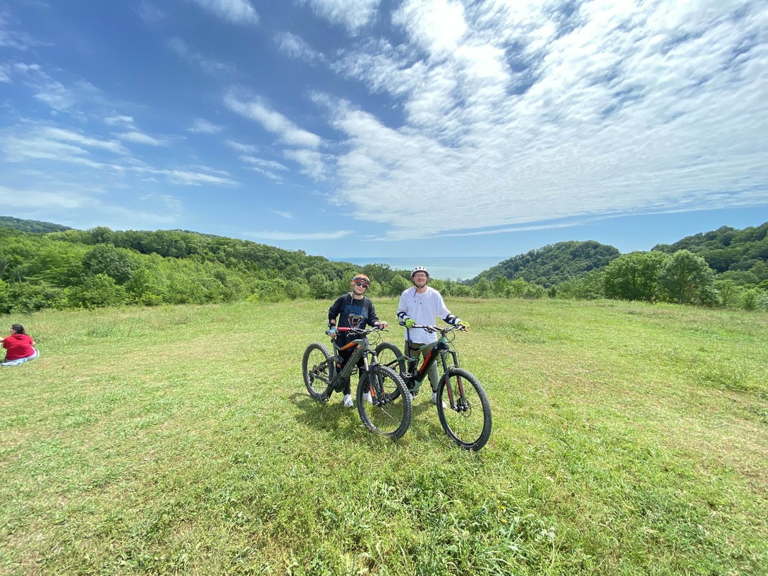 Это лучшая экскурсия в горы. Поездка на дорогих двухподвесных велосипедах с электрическим ассистентом. Александр внимательно рассказывает технику езды, правила движения. Учитывает уровень подготовки человека при планировании маршрута.