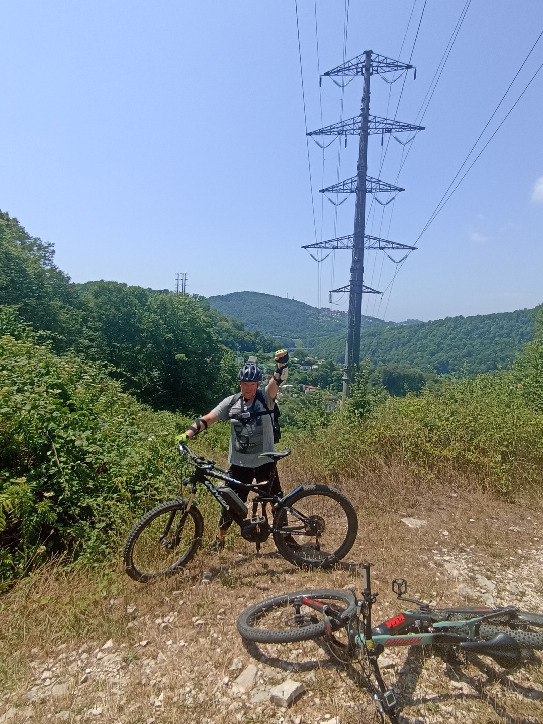Спасибо большое Александру за возможность покататься на электровелосипедах в горах. Вид шикарный! В некоторых местах для меня конечно было экстремально, особенно на спуске, крутой подъем по скалистой местности супер.