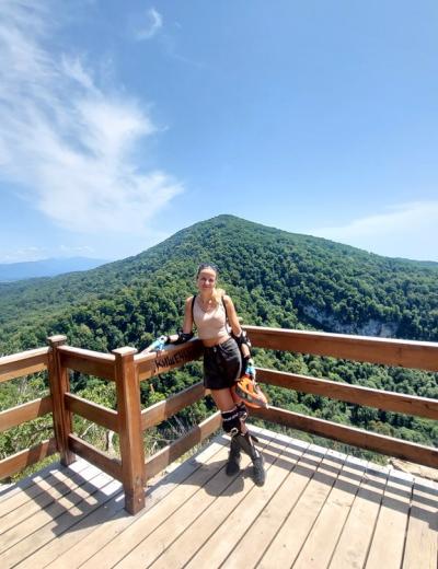 Мы встретимся, познакомимся и устроим для вас небольшой тест-драйв, чтобы определить оптимальный маршрут в зависимости от уровня вашей подготовки. Конечно, самые интересные места вы не пропустите. Предлагаю такой живописный вариант: мы поднимемся на вершину Орлиных скал, посмотрим на лежащий внизу Сочи, поздороваемся с Прометеем, затем по трейлу спустимся к обзорной поляне и по желанию продолжим маршрут к даче Сталина, через Зелёную Рощу.