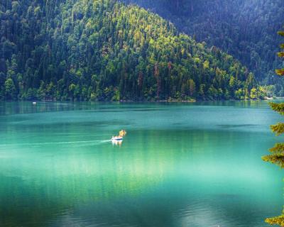 Последняя точка маршрута — визитная карточка страны — озеро Рица. В его чистейших водах ловят самую вкусную форель, а с берегов видны живописные «альпийские» луга. Вы насладитесь тишиной и спокойствием у озера, узнаете, где находится одна из абхазских дач Сталина и чем она примечательна, а также познакомитесь с историей государства с I века до наших дней.