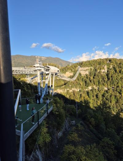 По пути в горные поселки вы посетите величественное Ахштырское ущелье, где построили Скайпарк, и увидите каньон Белые скалы. Подниметесь на смотровую площадку ущелья Ахцу и оцените с высоты долину реки Мзымта и три дороги, ведущие к Красной Поляне. А еще мы остановимся у нарзанного источника Чвижепсе, где вы сможете попробовать вкуснейшую минеральную воду.