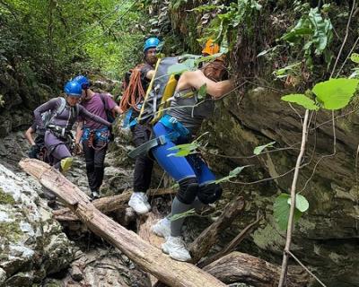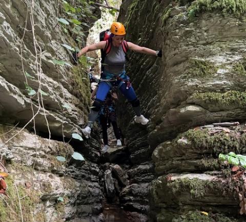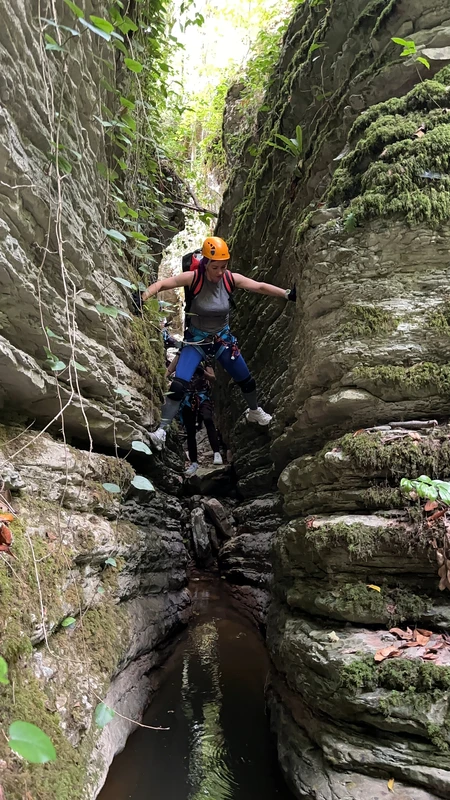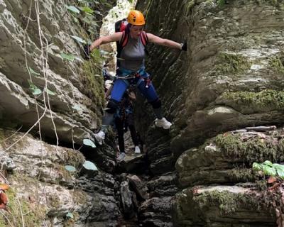 - Приготовьтесь совершить несколько спусков на верёвках и преодолеть различные преграды, устроенных самим каньоном. Самый высокий спуск — 30 метров, после которого мы устроим перекус