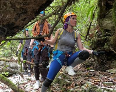 - На старте выдадим снаряжение и проведём пробные спуски, чтобы вы оценили свои силы и почувствовали работу с верёвкой и рельефом. Затем инструктаж по безопасности — и отправляемся навстречу приключениям!