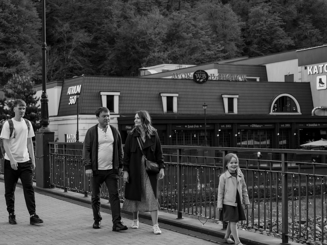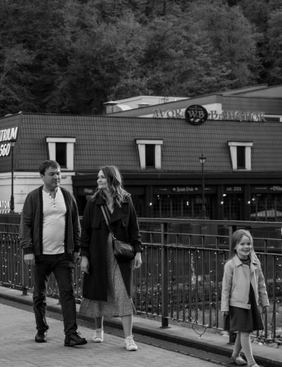 Маршрут подстраивается под ваши пожелания, а стандартный вариант — это улочки и живописная набережная реки Мзымта на курорте «Роза Хутор». Чудесные снимки получатся на фоне завораживающих природных видов, башни Ратуши и домов в итальянском стиле. Как местный житель наш фотограф откроет древнюю и современную историю курорта «Красная Поляна»; расскажет о высшей точке — пике «Каменный столб»; даст рекомендации по канатным дорогам, ресторанам, магазинам.