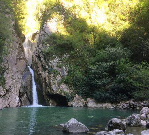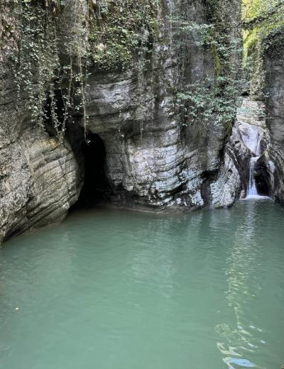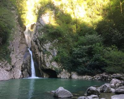Вы отправитесь на прогулку по живописному Агурскому ущелью, которое славится своими водопадами и расположено совсем недалеко от города. Пройдёте мимо таинственной Чёртовой купели, полюбуетесь на алмазные воды водопадов. Насладитесь свежим воздухом и послушаете «шелест» камнепадов. Я расскажу вам об истории этих мест, о народах, издревле населяющих черноморское побережье Кавказа.