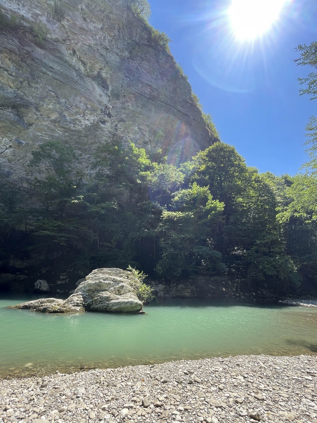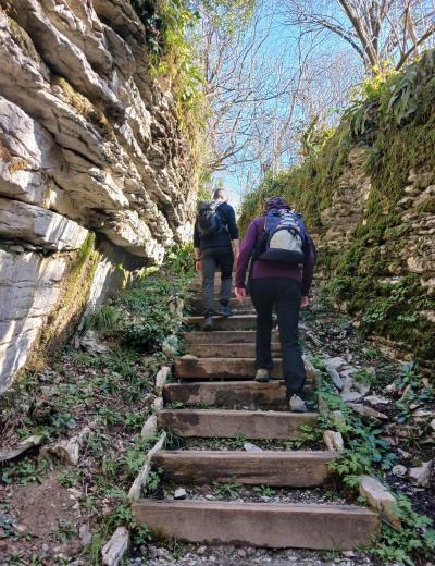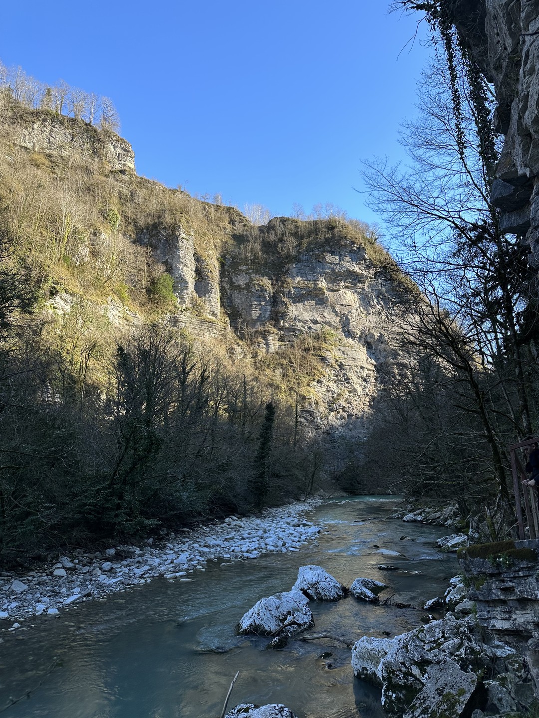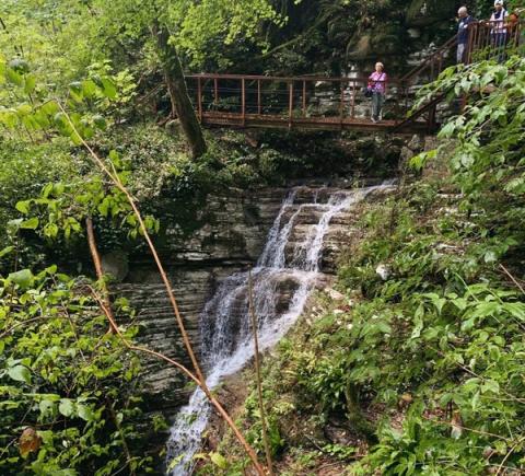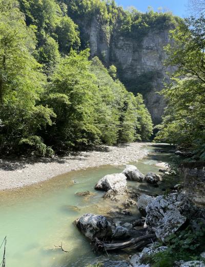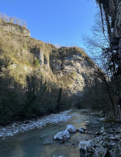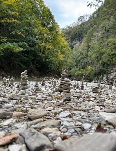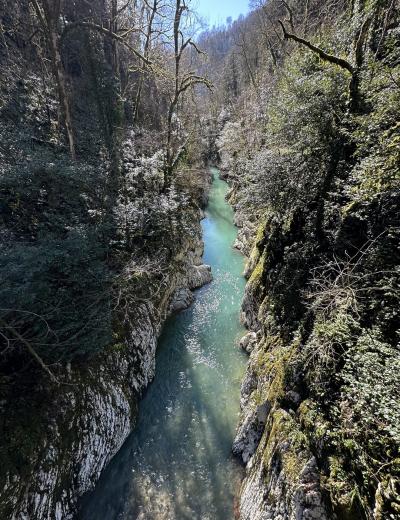 Чуть больше часа неспешным шагом — и вот перед нами узкое ущелье, образованное скальными стенами высотой до 50 метров. Это не просто природный объект, а настоящее произведение искусства. Здесь оборудованы лестницы для подъёма и подвесной мост, с которого вы оцените величие и мощь каменных образований. Как возникли Кавказские горы и почему на их вершинах можно увидеть следы моллюсков, живших на дне океана миллионы лет назад? Увидите на прогулке!