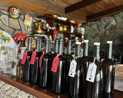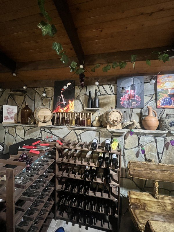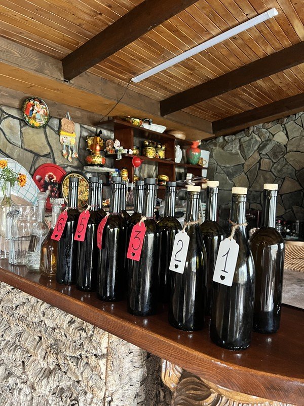 - Сначала вас ждёт дегустация: 2 вида белого вина (сухое цитронный магарача, полусладкое французский мускат) и 3 вида красного (сухое саперави, полусухое бычий глаз, полусладкое бычий глаз/мускат). Во время готовки можно безлимитно пить понравившееся вино или домашние компоты
