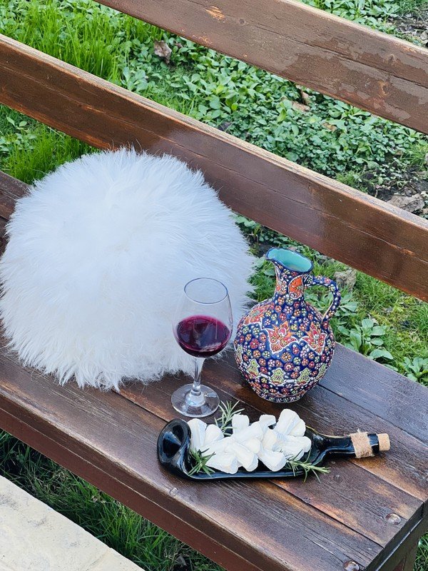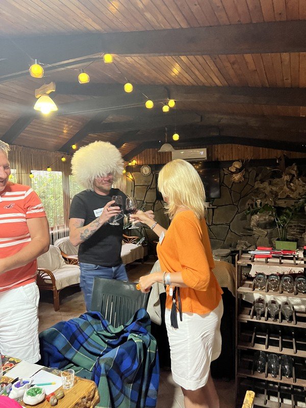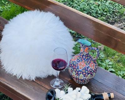 - Мастер-класс пройдёт на территории небольшого виноградника и сада — в уютной закрытой беседке с кондиционером. При желании вы сможете сделать фото в национальных папахах