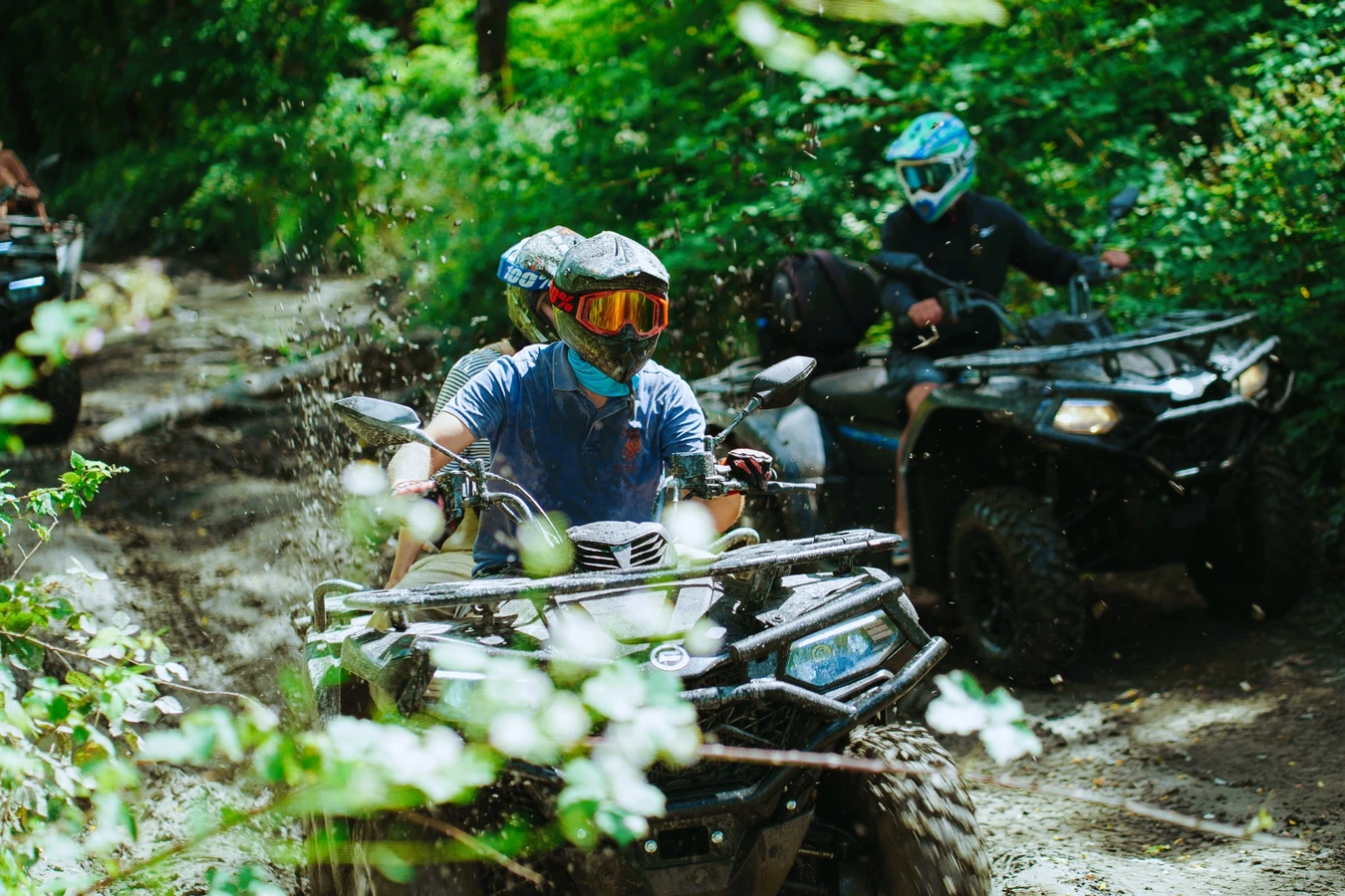 Полный комплект экипировки (грязезащитный костюм, резиновые сапоги, шлем и очки) — берите с собой только сменные носки и отличное настроение.
