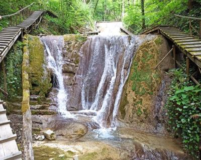 Вас ждёт яркая поездка по реке Шахе, прогулка вдоль ущелья ручья Джегош и Годлик, знаменитый комплекс из 33 водопадов и горная купель «Любви и Долголетия». Вы посетите огромный Волконский дольмен и увидите самый большой экземпляр тюльпанового дерева в России — лиран Раевского. И конечно, по дороге будет остановка возле одного из местных хозяйств, где вы продегустируете янтарное вино из чарки и домашние копченые сыры.