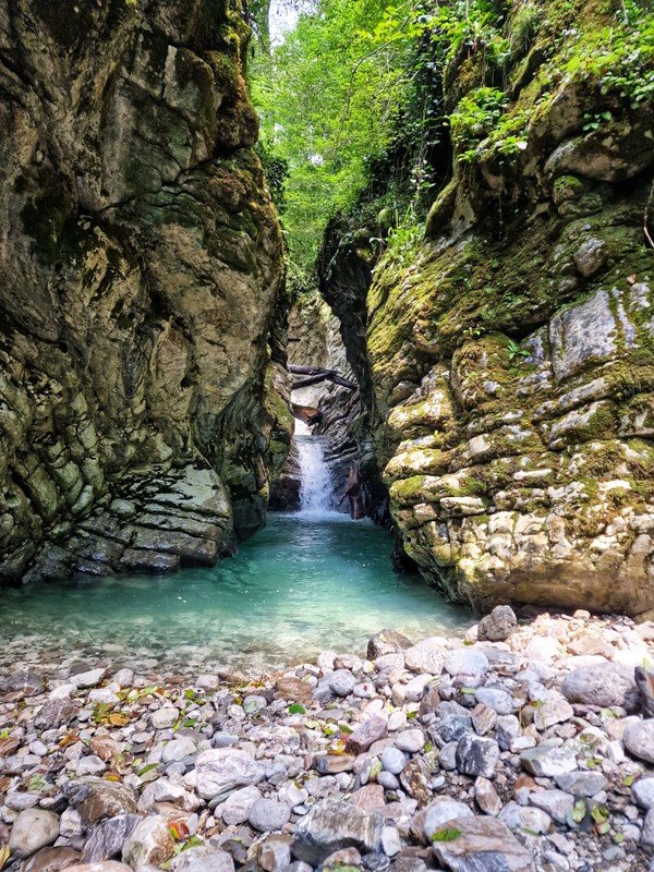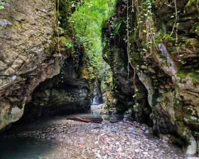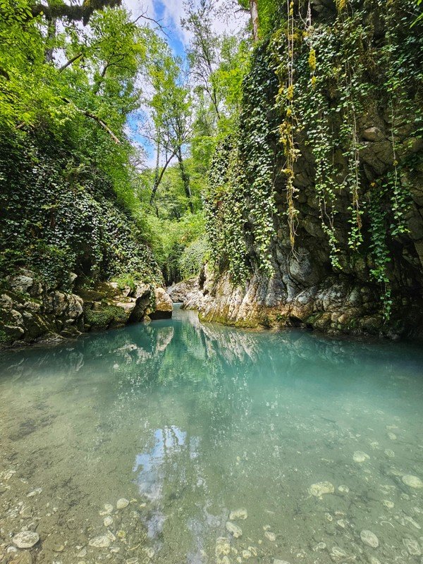 ✔️ Пройдёте вдоль русла реки Псахо с причудливыми скалистыми стенами, уступами и обрывами.