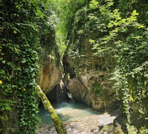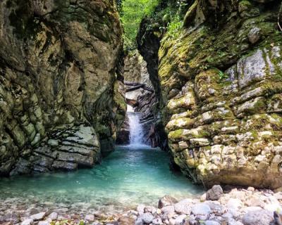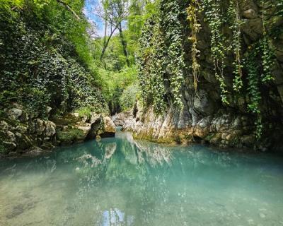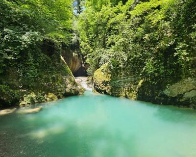 От берега Чёрного моря до отрогов Главного Кавказского хребта расположено множество природных достопримечательностей: ущелья и каньоны, водопады, пещеры, скалы. Приглашаем отправиться к ним симпатичным и несложным маршрутом по руслу реки Псахо. Главная её особенность — небесно-голубой цвет воды, очень редкий для горных рек. К тому же в ней достаточно тёплая вода, летом её температура достигает +20°C.