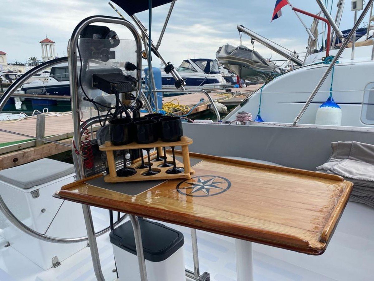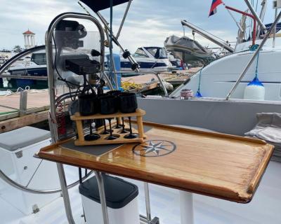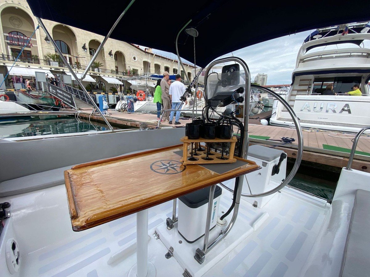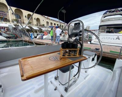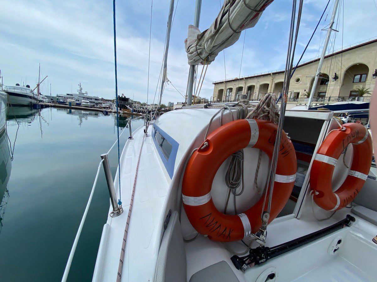 С вами будут наши профессиональные матрос и капитан. На борту есть большая посадочная зона со столом, мягкий кожаный лежак на носу яхты, туалет и раковина, посуда (в т.ч. бокалы под шампанское, рюмки), сумка-холодильник, полотенца — 6 шт, жилеты (2 детских, 2 взрослых), водонепроницаемые чехлы на телефон, снасти со ставками на ставриду, SUP-доска и Bluetooth (можно подключить свою музыку). Общая вместимость — 8 человек.