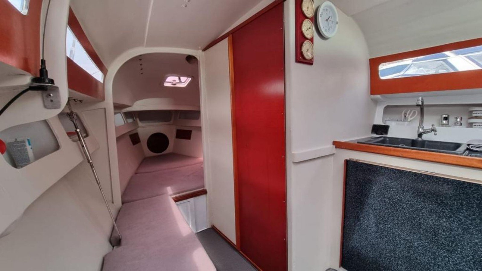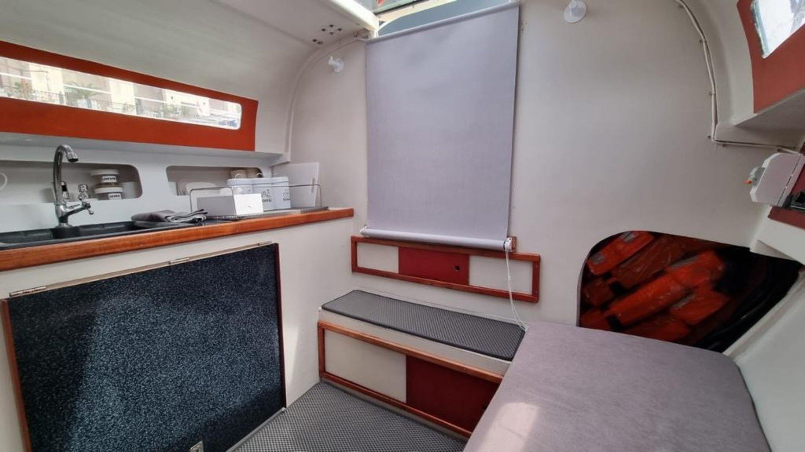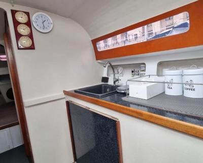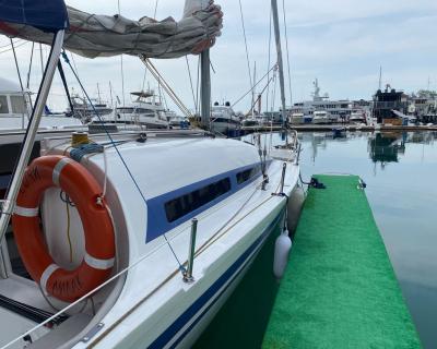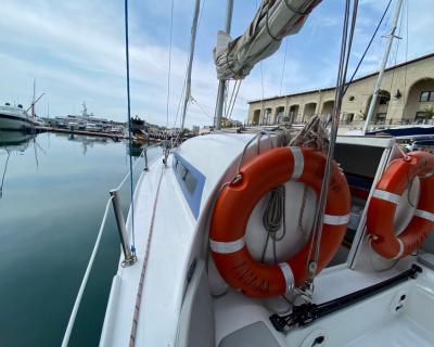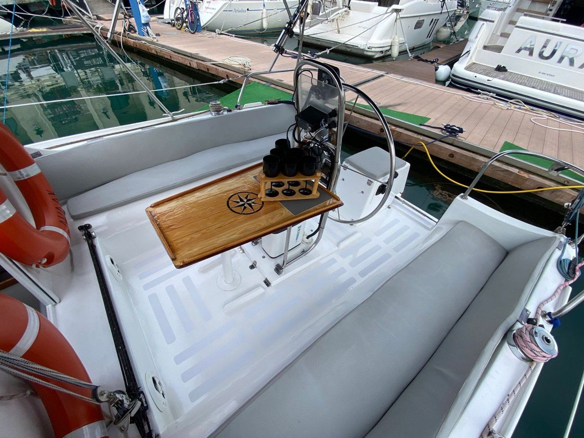 С вами будут наши профессиональные матрос и капитан. На борту есть большая посадочная зона со столом, мягкий кожаный лежак на носу яхты, туалет и раковина, посуда (в т.ч. бокалы под шампанское, рюмки), сумка-холодильник, полотенца — 6 шт, жилеты (2 детских, 2 взрослых), водонепроницаемые чехлы на телефон, снасти со ставками на ставриду, SUP-доска и Bluetooth (можно подключить свою музыку). Общая вместимость — 8 человек.