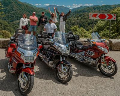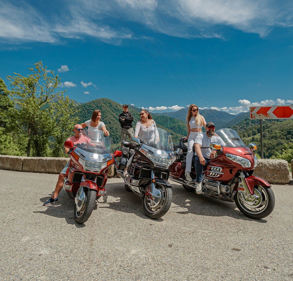Маршрут до Солох-Аула — один из самых щедрых на виды и впечатления. Мы прокатимся вдоль побережья, любуясь морем, и начнем подниматься в горы по серпантину сквозь субтропические джунгли. Не волнуйтесь, поездку не омрачат пробки — мы в них не стоим. А комфортные мотоциклы Honda Gold Wing, оборудованные удобными креслами и динамиками, позволят в полной мере насладиться путешествием.