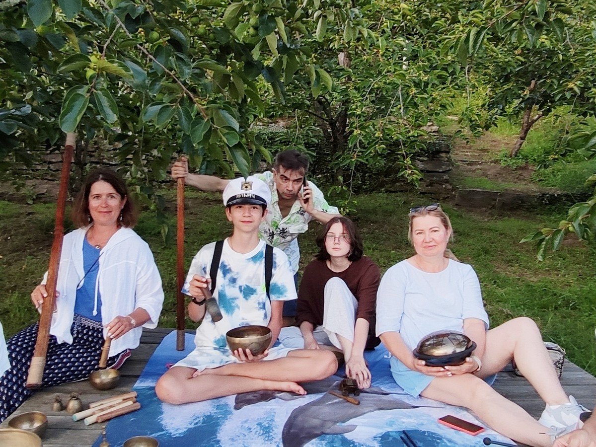 Вторая часть экскурсии — это просто «космос»! На смотровой площадке с видом на море мы развернем «барабанный стол» — дастархан. В формате интерактивного мастер-класса вы познакомитесь с уникальной коллекцией необычных ударных инструментов: от «космических» барабанов ханг и поющих тибетских чаш до индийских караталов и валдайских колокольчиков.