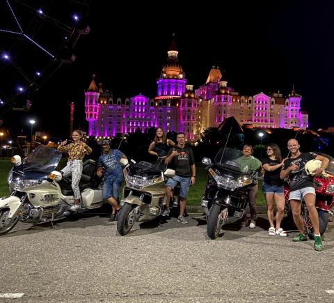 - Поездка проходит на туристическом мотоцикле Honda Gold Wing с удобным пассажирским креслом со спинкой, полноценными подножками и отличной музыкой. Перед стартом проводим инструктаж