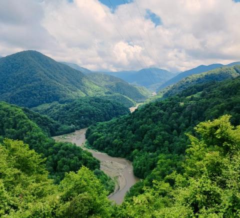 Отсюда открывается прекрасная панорама на бескрайние просторы, горные хребты и зелёные долины.