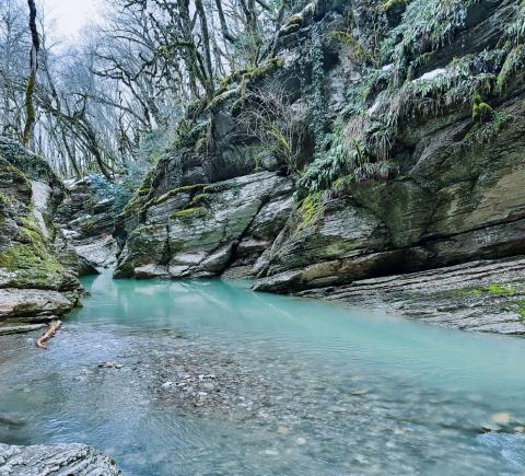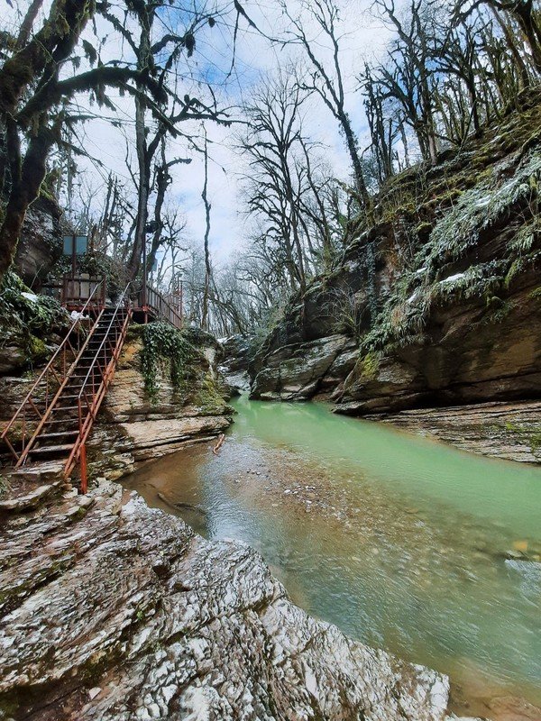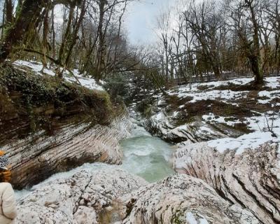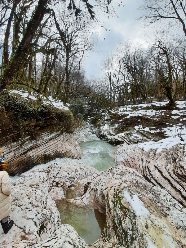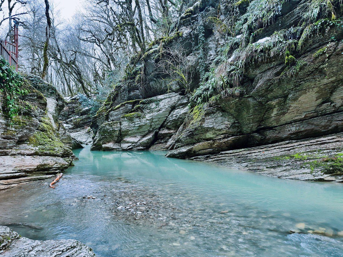 По живописной тропе мы выйдем к водопаду в пещере с каменными стенами высотой до 54 метров. У вас будет время пофотографировать и насладиться завораживающим зрелищем. Еще одна наша цель — мокрый каньон Псахо шириной от 1,5 до 10 метров. Это территория самшитовой рощи, поэтому деревья, покрытые мхом и напоминающие необычных существ, делают каньон еще более сказочным.