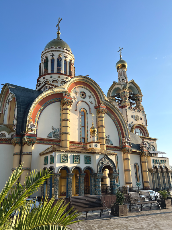 Оцените яркую архитектуру храма Святого Равноапостольного князя Владимира — крестителя Руси.