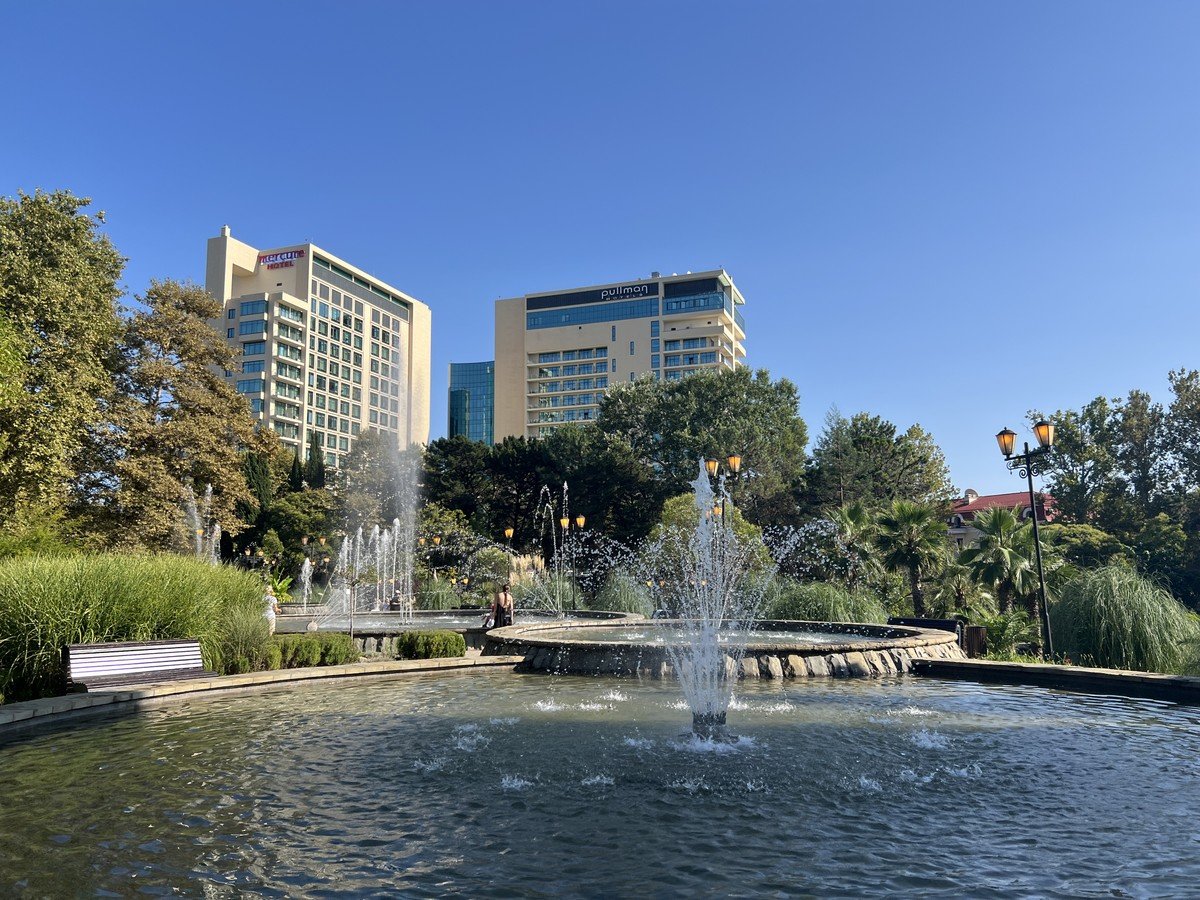 Выпьете воды из минеральных источников в Приморском парке.