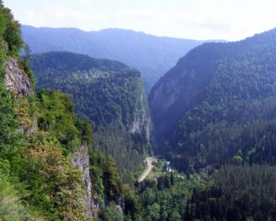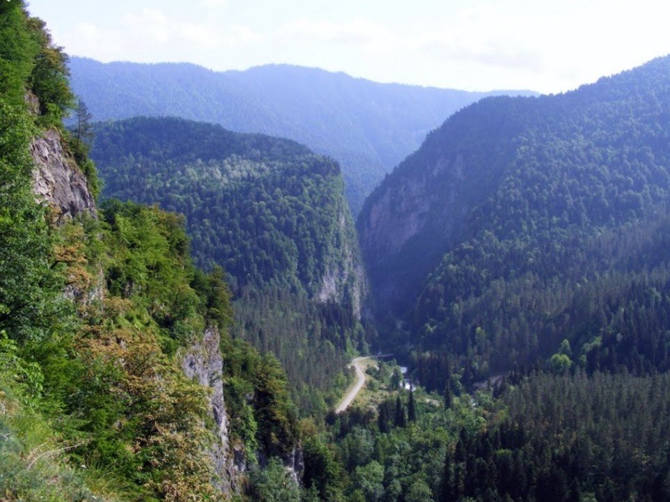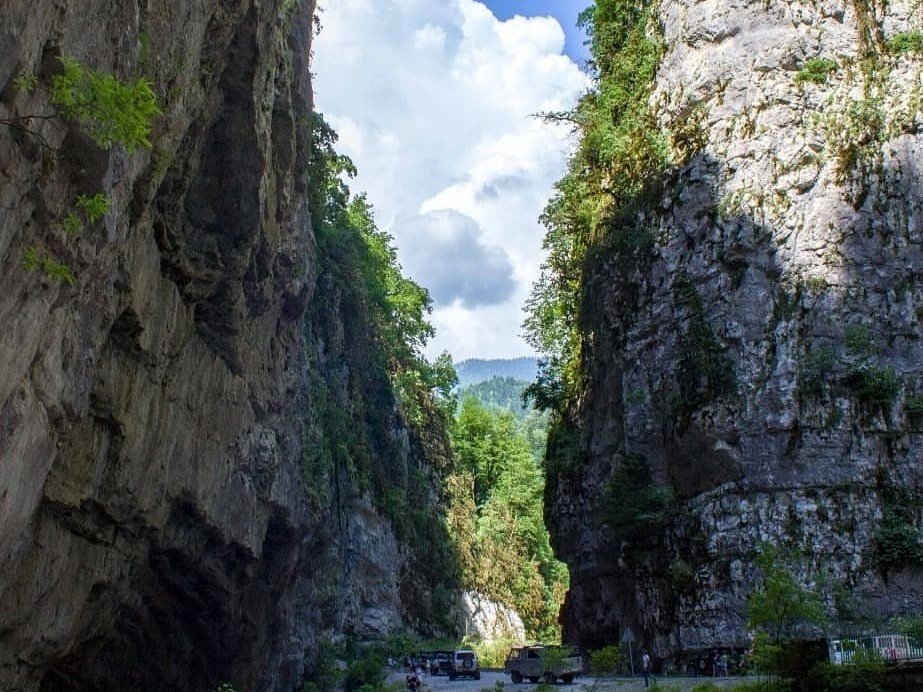 - Юпшарский каньон, где узкую дорогу охраняют высокие скалы