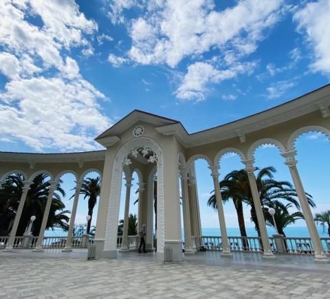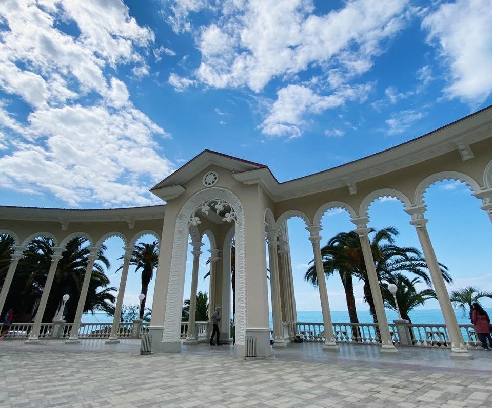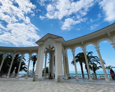 Проехав через границу, вы скоро окажетесь в городе-курорте Гагра. Сфотографируетесь у белоснежной Колоннады, где снимали фильм «Зимний вечер в Гаграх», рассмотрите символ города — ресторан Гагрипш, погуляете по живописному парку и увидите замок принца Ольденбургского, основателя города.
